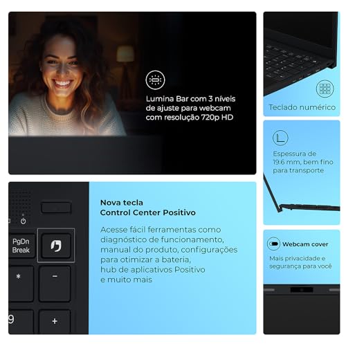 - Lumina Bar: iluminação em 3 níveis para videochamadas mais nítidas, mesmo à noite.