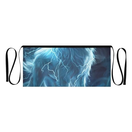 ODAWA Avental de margaridas de flores silvestres em aquarela com 3 bolsos garçom curto meia cintura para servir avental 64 x 29 cm, Lobo branco ao luar, Tamanho Único