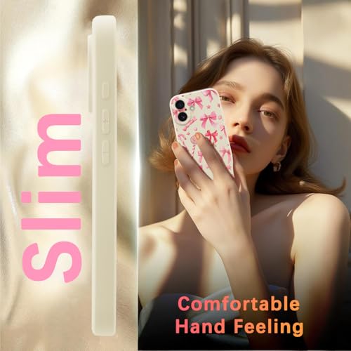 OFQKOAKS Capa para iPhone 17 Pro compatível com MagSafe, linda capa de telefone magnética com laço rosa doce de Natal, silicone líquido branco macio, capa protetora de ajuste fino para mulheres e