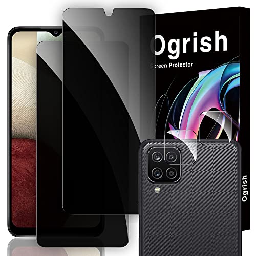 Ogrish Pacote com 2 protetores de tela de vidro temperado de privacidade para Samsung Galaxy A12/a12 Nacho - e 2 protetores de lente de câmera -...