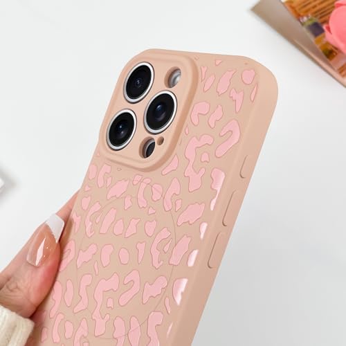 OOK Capa magnética para iPhone 16 Pro Max, estampa fofa de leopardo rosa de silicone, compatível com MagSafe capa de telefone fina à prova de choque com...