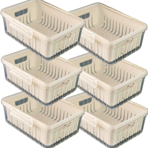 Organizador de Geladeira,Secador de Salada,Conjunto de 6 PeçAs,Capacidade de 3,8 Litros,Completo Com Tampa e Bandeja Interna para Drenagem de áGua,Adequado para Lavar Frutas e Legumes(6 Organizadores)