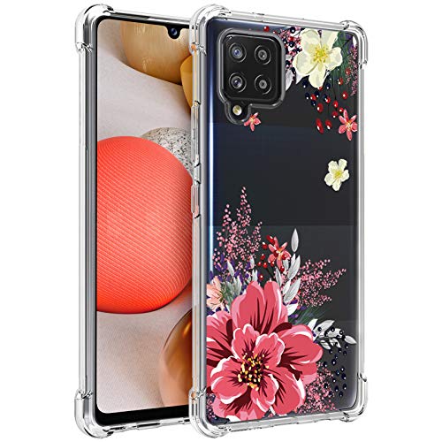 Osophter Capa para Galaxy A42 5G, capa para Samsung M42 5G flor floral para meninas mulheres absorção de choque capa de telefone de borracha TPU flexível para Samsung Galaxy A42 5G (flor vermelha)