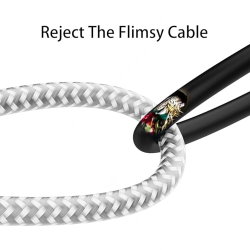 - Porta USB C de proteção tripla: o cabo USB para USB C tem certificações eletrônicas de segurança que atendem aos padrões apropriados, tecnologia de soldagem a laser integrada, que garante que a parte de metal não quebre. A parte do núcleo de cobre é reforçada com cola UV para evitar que as juntas de solda caiam. A porta USB C passa no teste de carga de 13 kg que aumenta a vida útil e nunca quebra