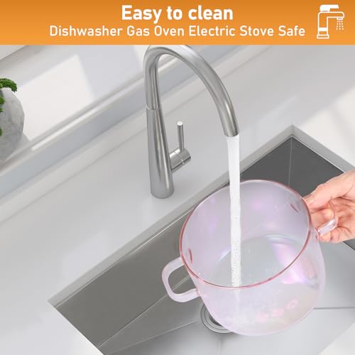 Panela de vidro de 1,5 L, panela de vidro transparente rosa com tampa, resistente ao calor para sopa de macarrão e vegetais