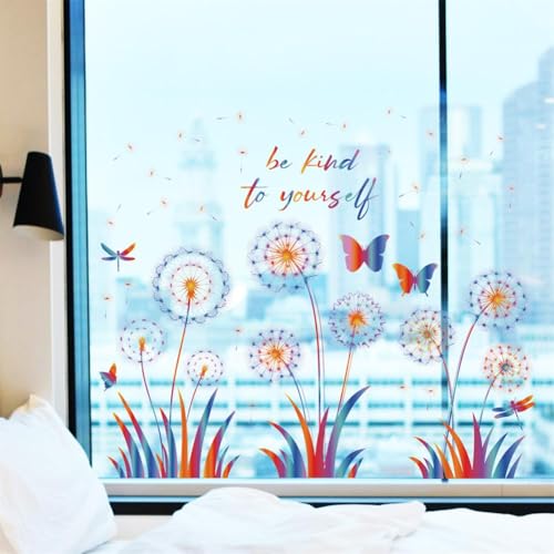 PLIGREAT 2 folhas de adesivos coloridos de janela de dente-de-leão, borboletas, adesivos de janela destacáveis e colados, decalques de aquarela para...