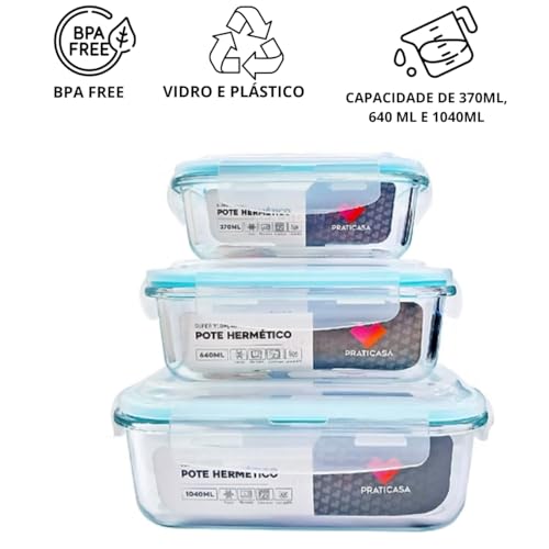 - Em amazon.com.br você pode comprar Potes Herméticos de Vidro 370ml, 640ml e 1040ml | Vedação Antivazamento, Tampa 4 Travas | Para Marmitas, Freezer, Forno e Micro-ondas | Kit 3 unidades por apenas R$ 100,00