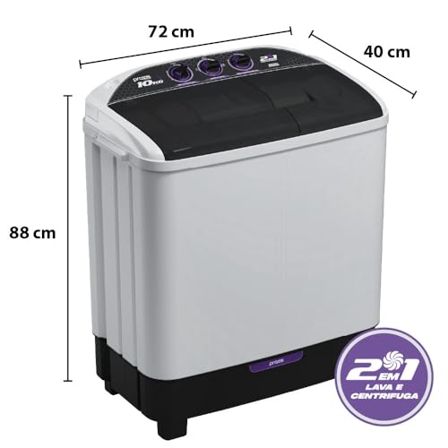 Praxis Máquina de Lavar Roupas 10kg 2 em 1 Lava 6kg e Centrifuga 4kg 127v Branca