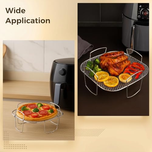 - Fluxo de ar superior, resultados crocantes: apresentando uma estrutura de malha de diamante superior, nosso rack de fritadeira de ar garante um fluxo de ar ideal; promove uma distribuição uniforme de calor para refeições perfeitamente crocantes e uniformemente cozidas todas as vezes