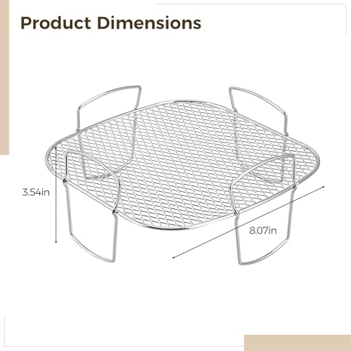 Especificação: Rack de fritadeira a ar, acessório multifuncional de aço inoxidável 304, desidratador quadrado e rack de vapor, compatível com Cosori Gourmia e outras fritadeiras a ar
