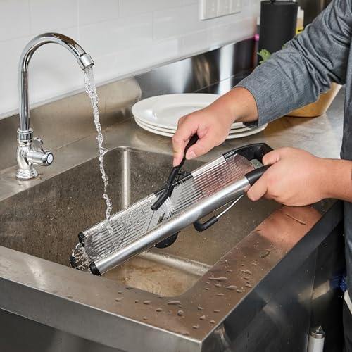 Restaurantware Fatiador Mandoline 40 x 13 x 13 cm ajustável com luvas resistentes ao corte, escova de limpeza, lâmina de aço inoxidável, utensílio de cozinha...