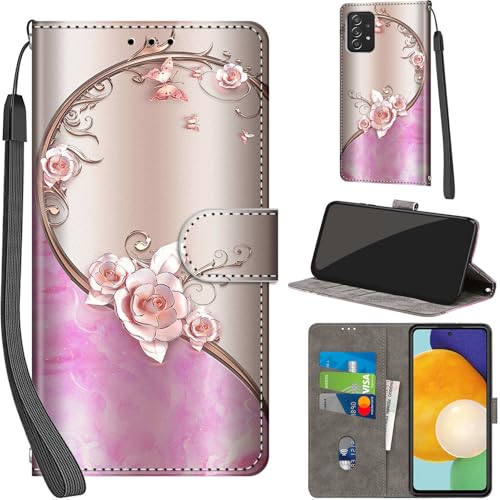 Especificação: Salanheo Capa carteira para Samsung Galaxy A53 5G, com [3 compartimentos para cartões], fecho magnético com suporte, capa protetora flip de couro PU à prova de choque 16,5 cm, rosa rosa