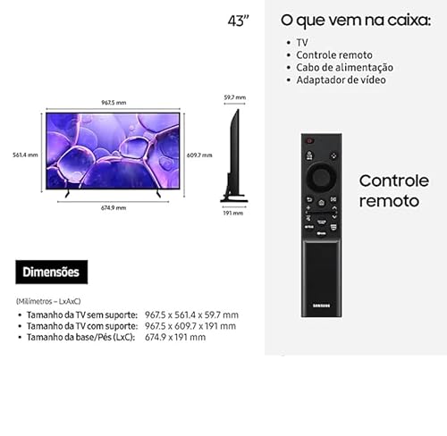 Especificação: Samsung Combo Smart TV 43″ Crystal UHD 4K U8100F + Soundbar HW-B400F