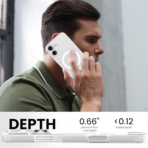 Especificação: Sansunto Capa para iPhone 16 Plus, capa protetora fina para mulheres e homens, ajuste fino com MagSafe, traseira fosca translúcida, proteção contra quedas de grau militar, capa de telefone 16plus