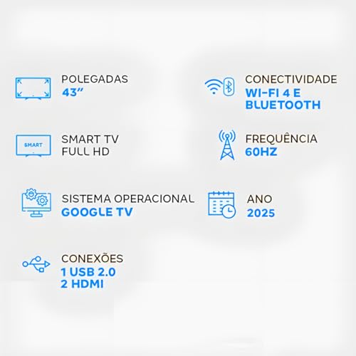 - SEMP SMART FHD 43“ S42 GOOGLE TV com Wi-Fi e Bluetooth integrados, HDR10, Dolby Audio, e HDMI