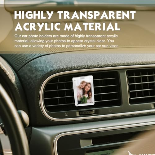 Especificação: Shakas 2 peças de suportes para fotos de carro, para painel de ventilação, clipe magnético, visor de cartão de foto de adsorção de acrílico com clipe de fixação, moldura de carro personalizada 8,9 x 6