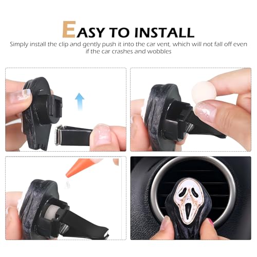- Materiais de alta qualidade: o rosto do crânio, o rosto fantasma e os clipes de ventilação do carro sem rosto são feitos de material de resina premium e trabalhados com precisão. Eles são resistentes a rachaduras e apresentam uma estrutura resistente. Seja exposto à luz solar intensa ou sujeito à chuva, eles não quebrarão ou desbotam.