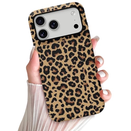 • [Material] A linda capa de telefone leopardo feita de TPU à prova de choque + pc híbrido capa dura de 2 camadas para iPhone 17 Pro