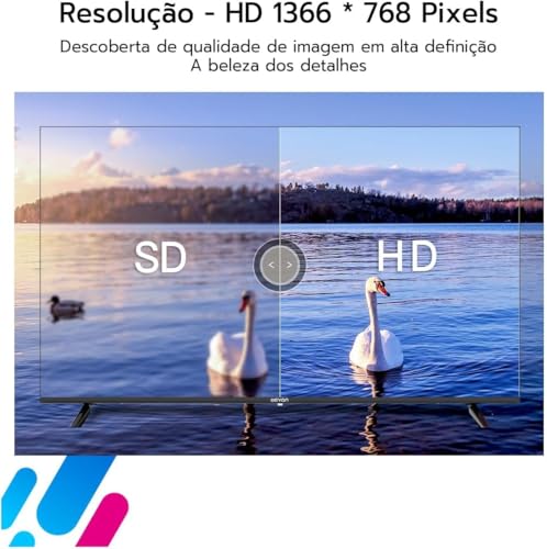 - Resolução HD – A tela de 32 polegadas em alta definição oferece imagens mais nítidas e cores vibrantes, com detalhes aprimorados que proporcionam uma experiência visual superior, tudo isso com eficiência energética.
