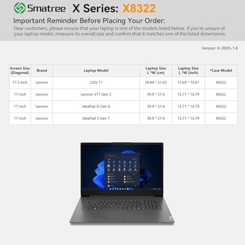 - Compatibilidade: projetada para caber perfeitamente no laptop Lenovo V17 Gen 2 de 17 polegadas; laptop Lenovo IdeaPad 3 Gen 7 de 17 polegadas; laptop Lenovo IdeaPad 3i Gen 6 de 17 polegadas
