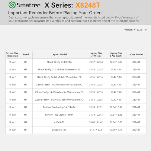 Especificação: Smatree Capa protetora rígida de EVA para HP Pavilion Plus de 14 polegadas 14t-eh100/14-eh1047nr, para Dragonfly Pro/ZBOOK Firefly G11/G11 A/G10/G9, para HP mt645 G8, rosa (X8248TP)