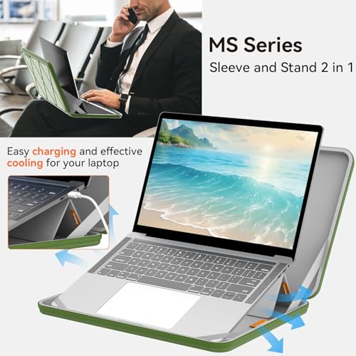 - Versão atualizada: suporte para laptop e capa 2 em 1. O suporte interno dobrável pode ajustar a altura para se adaptar a várias posturas de trabalho em diferentes ambientes. Carregamento fácil e resfriamento eficaz para o seu laptop