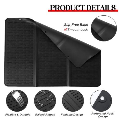 - Tapete de secagem de cozinha versátil: este protetor de fogão possui um design de orifício suspenso triplo que economiza espaço quando não estiver em uso, permitindo fácil armazenamento ou pendurado em um gancho; a borda ampla, elevada e canelada melhora o fluxo de ar e a ventilação, absorvendo efetivamente gotas de óleo de talheres, copos, frutas e legumes; as laterais altas e a parte inferior à prova d’água mantêm as bancadas secas e limpas, tornando-o um tapete de drenagem de cozinha ideal
