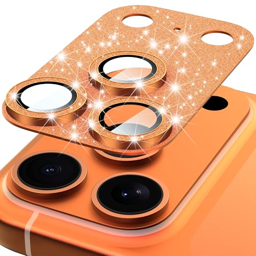 Especificação: Suoman Protetor de lente de câmera para iPhone 17 Pro, [All-in-one] [Forte aderência] Capa de lente de câmera de vidro temperado independente com glitter brilhante – Laranja