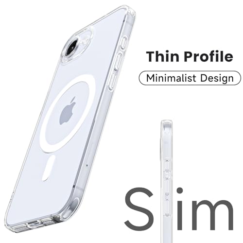 Especificação: Svanove Capa transparente macia para iPhone 16e fina magnética, compatível com Magsafe Minimalista Ultra Fina Transparente Silicone SafeCase, Não Amarelecimento Borracha TPU Bumper Mag Safe Cover