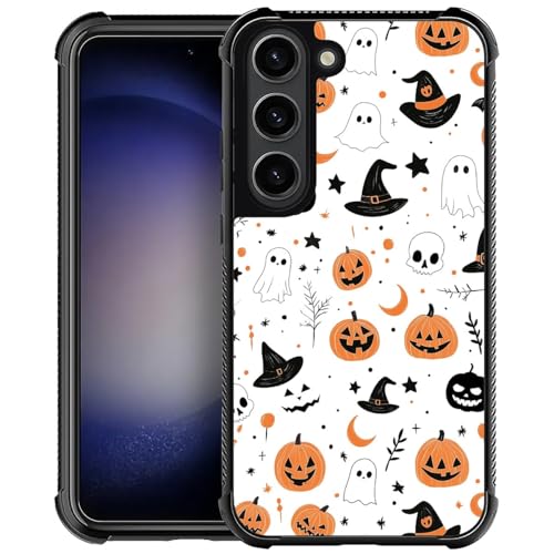 TAMEFOX Compatível com Samsung Galaxy S23 Plus, Hallowed Pumpkin Ghost-M01 Capa protetora durável de TPU macio mais forte à prova de choque antiderrapante...