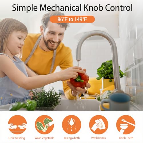 - 【Inversor inteligente de economia de energia】Mantém automaticamente a água quente e armazena água quente. O tanque compacto de 2,5 galões pode ser instalado sob a pia, com uma eficiência térmica de 99% e uma temperatura máxima de 65 °C. Ele tem um chip inteligente embutido que aquece até a temperatura que você definiu, e quando atinge a temperatura desejada, ele isola automaticamente para manter o calor. Além disso, ajuda a reduzir o acúmulo de escala!