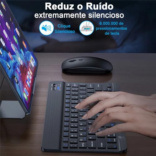 Teclado E Mouse Bluetooth Recarregáveis – Design Slim, Silencioso E Ergonômico Para Escritório E Casa Para Computador, Tablet E Laptop Ipad | Kit Premium Sem...