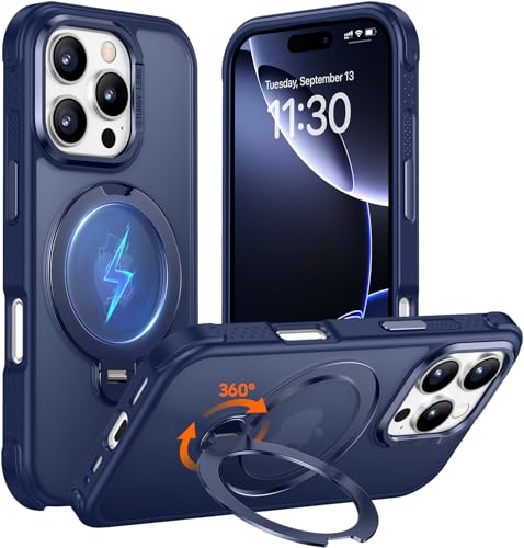 Especificação: Temdan Capa projetada para iPhone 16 Pro Max, [com suporte magnético invisível rotativo de 360°] [à prova de choque de grau militar] [compatível com MagSafe] Capa de telefone fosca translúcida