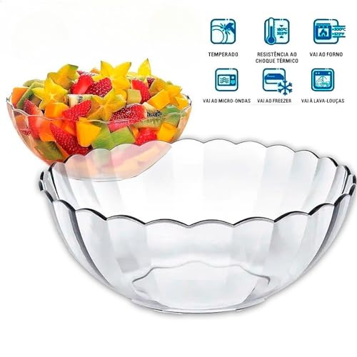 Tigela de 2 Litros Circular de Vidro Temperado Sobremesas e Saladas,bowl,saladeira