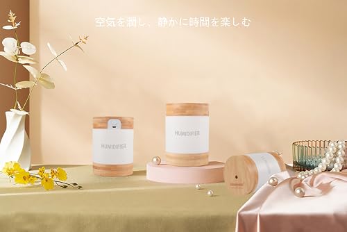 Especificação: Umidificador ultrassônico de bambu com névoa fria – Hidratante de ar portátil silencioso de 400 ml com luz noturna de LED dupla, alimentado por USB-C, desligamento automático, design ecológico para