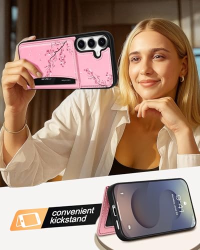 Especificação: Uppuppy Capa para Samsung Galaxy S25/S24 com carteira – Compatível com MagSafe Cute Women Girls Design Estético Suporte de cartão de crédito Capa de telefone para Samsung S25/S24, flor de pêssego