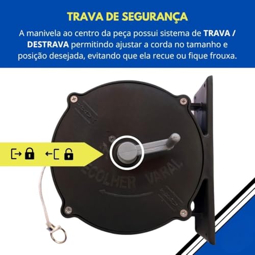 - Quando não estiver em uso, a corda pode ser completamente retraída para dentro da caixa, varal parede mantendo sua casa organizada e esteticamente agradável o tempo todo.