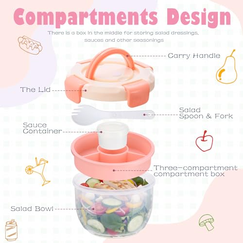 - Design à prova de vazamento: esta conveniente lancheira de salada está equipada com uma tampa selada e 4 clipes laterais, para que você não precise se preocupar com seus itens sendo jogados e bagunçados durante o transporte; pode manter os alimentos frescos em todos os momentos, sem vazamentos, e manter os ingredientes secos e úmidos separados e frescos