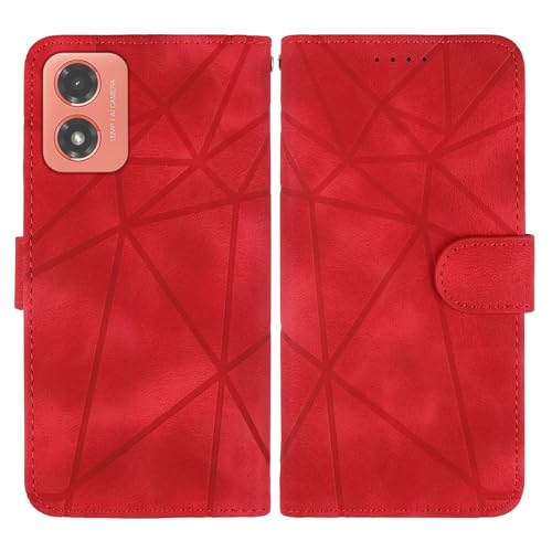 Wanyuexes Capa para Moto G24 4G/Moto G04/Moto E14/Moto G04S XT2421-2 Capa carteira com protetor de tela de vidro temperado, suporte para cartão de crédito de couro para Motorola Moto G24 4G vermelho