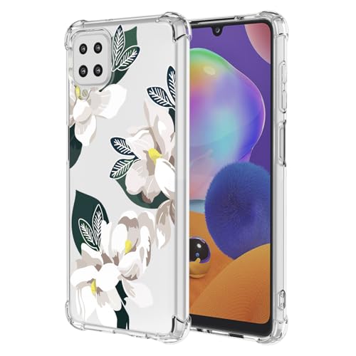WEIOUHR Capa para Galaxy A12 4G Samsung A12 4G transparente macio TPU design de flor branca, à prova de choque, resistente a arranhões, capa protetora leve, para Samsung Galaxy A12 4G (Magnólia)