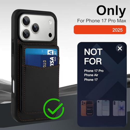 Especificação: WPCase Capa carteira para iPhone 17 Pro Max [compatível com MagSafe] com suporte magnético para cartão para homens e mulheres, capa protetora de couro preto para iPhone 17 Pro Max com suporte para
