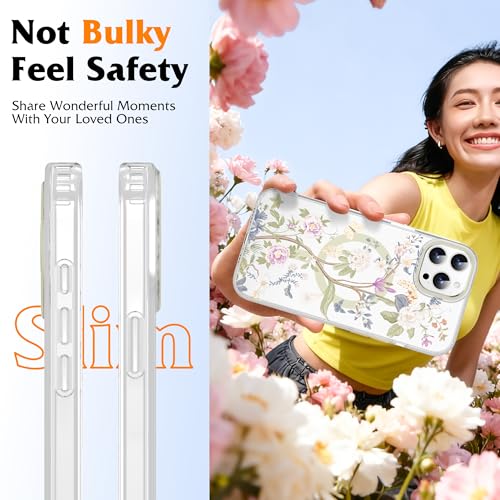 XIQI Capa protetora compatível com iPhone 17 Pro para mulheres e meninas, design de flores florais fofas [compatível com Mag-Safe] Capa protetora para iPhone...