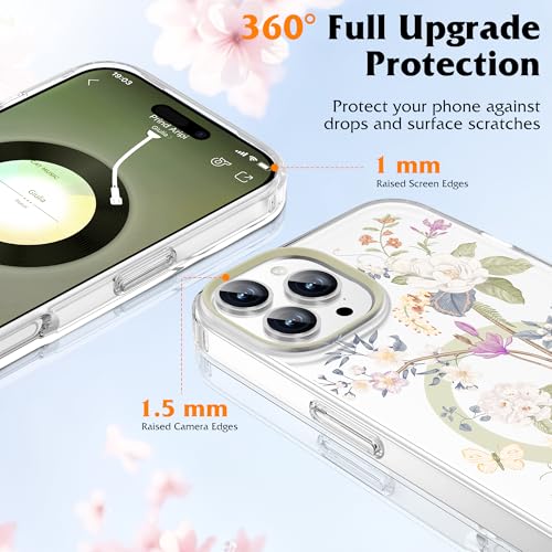 Especificação: XIQI Capa protetora compatível com iPhone 17 Pro para mulheres e meninas, design de flores florais fofas [compatível com Mag-Safe] Capa protetora para iPhone 17 Pro de 6,3 polegadas, borboleta de