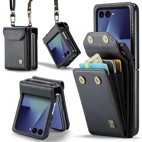 XKchatpt Capa tipo carteira transversal compatível com Samsung Galaxy Z Flip 7, capa flip de couro PU retrô com fecho magnético e suporte para cartão para Samsung Galaxy Z Flip 7 (preto)