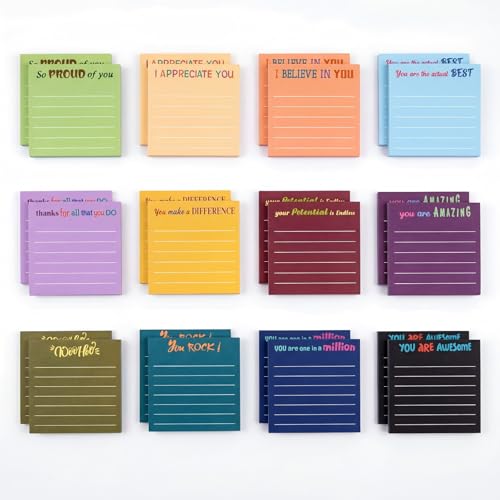 • Quantidade e estilos adequados: você receberá 24 blocos de notas adesivas de apreciação, incluindo 12 cores, dois blocos para cada cor, 35 folhas para cada bloco, um total de 24 blocos; quantidade suficiente e vários estilos podem atender às suas várias necessidades, você também pode compartilhar com sua família e amigos