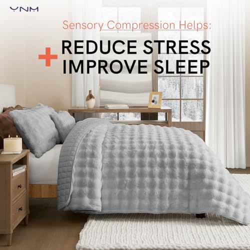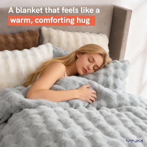 YnM Cobertor pesado ultramacio, cobertor de cama pesado fofo com bolhas, edredom grande de pele sintética de pelúcia, peça de decoração de casa macia e...