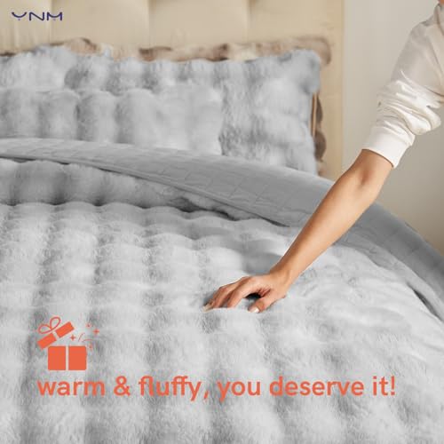 YnM Cobertor pesado ultramacio, cobertor de cama pesado fofo com bolhas, edredom grande de pele sintética de pelúcia, peça de decoração de casa macia e quente (cinza claro, 224 x 223 cm, 9 kg, casal