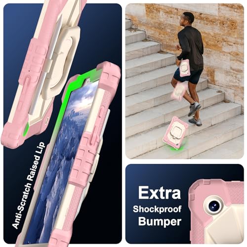 Especificação: YOUULAR Capa para tablet com alça de ombro para Samsung Galaxy Tab A11 22.1 cm, capa protetora resistente à prova de choque com suporte, alça de ombro para crianças, mulheres, homem, ouro rosa