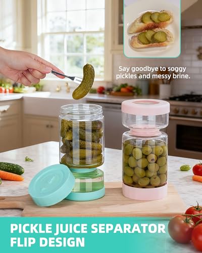 ZENS Pote de picles com tampa de filtro, recipiente separador de suco de pickle ampulheta de 1,048 g, tampa hermética à prova de vazamento, design duplo de...